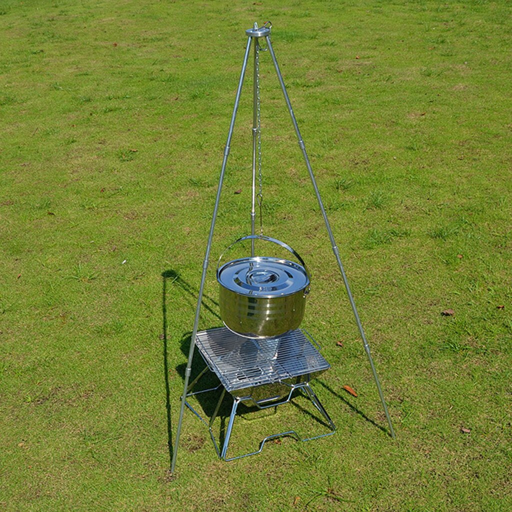 The Outdoor Campfire Tripod is the perfect companion for your camping and outdoor adventures! Made of premium grade aluminum alloy, it is strong and durable, while the heavy-duty three legs design ensures stability. The adjustable chain allows you to adjust the pot height over the flame, making it great for cooking or drying clothes. And when you're done, it's easy to set up and store away.